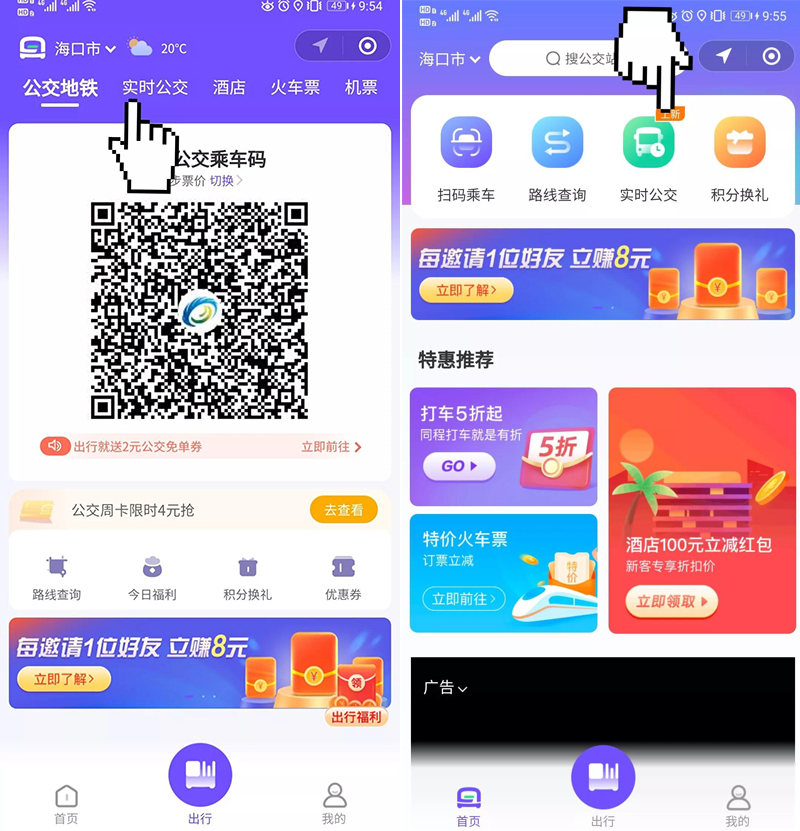 在乘車碼頁面或者小程序首頁點擊【實時公交】