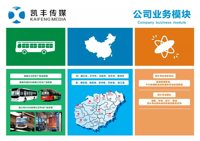 海南凱豐傳媒有限公司是海南省大型的專業(yè)廣告?zhèn)髅焦?,成立?014年,主營公交車廣告,廣告資源豐富,經(jīng)營面積覆蓋多個市縣,為眾多國內(nèi)外知名企業(yè)提供持續(xù),優(yōu)良的廣告服務(wù),并與多家知名代理公司保持良好合作關(guān)系。公司自成立以來,經(jīng)過市場的磨練逐漸走向成熟,在海南省具有一定的影響力及知名度。廣告客戶遍及全國各地,我們始終堅持客戶至上、誠信為本、力求完美、創(chuàng)意無限的經(jīng)營理念,真誠為廣大客戶服務(wù),得到廣大客戶的一致認(rèn)同。