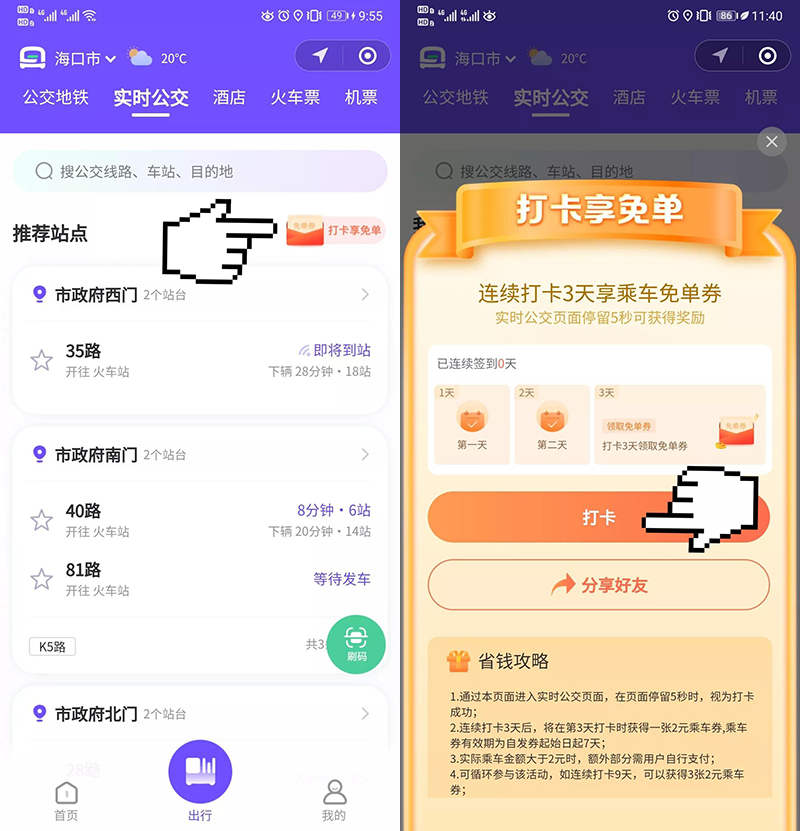 在實時公交頁面連續(xù)打卡3天