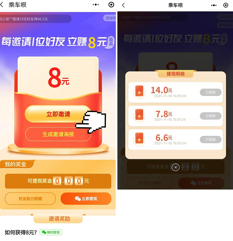 邀請好友注冊或出行,您賺現(xiàn)金!