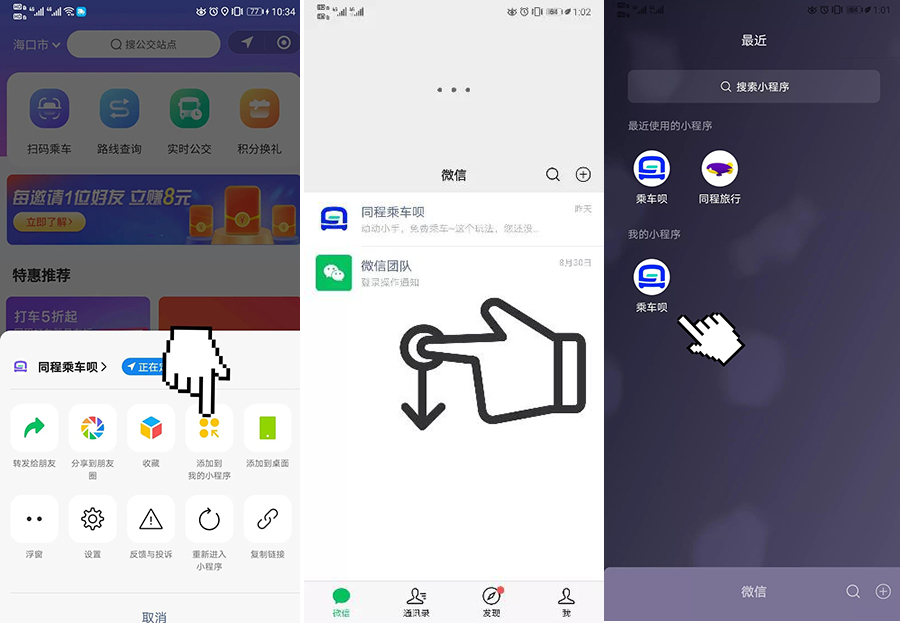 別忘了將【同程乘車唄】添加至我的小程序